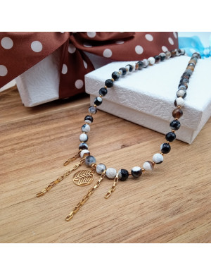 Ręcznie wykonany z kamieni naturalnych i stalowych złotych elementów, idealnie podkreśla indywidualny styl. To biżuteria, która sprawdzi się zarówno na co dzień, jak i w wyjątkowych chwilach.