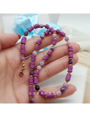 Naszyjnik zakończony jest elementami ze stali szlachetnej 316 L w kolorze złotym. Jest to materiał 100 % antyalergiczny. Nie zawiera niklu, lidu, ołowiu. Może być noszona przez osoby o wyjątkowo wrażliwej skórze.
