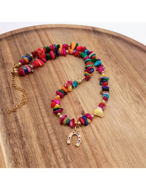 Naszyjnik zakończony jest elementami ze stali szlachetnej 316 L w kolorze złotym. Jest to materiał 100 % antyalergiczny. Nie zawiera niklu, lidu, ołowiu. Może być noszona przez osoby o wyjątkowo wrażliwej skórze.