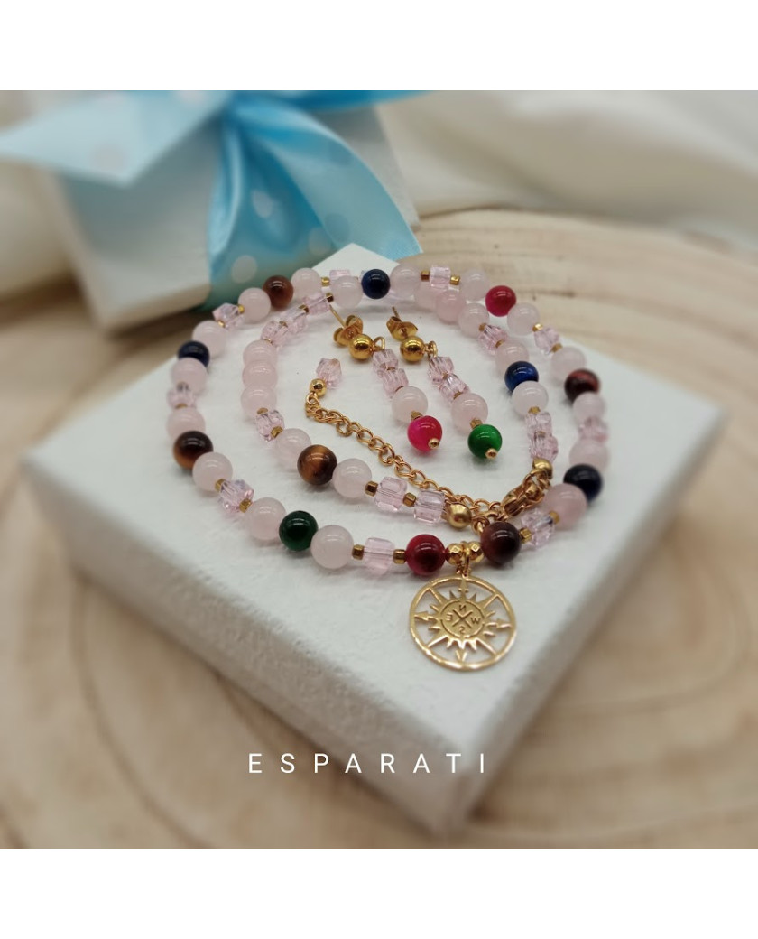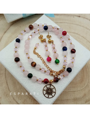 Kamienie: Kwarc różowy, Tygrysie oko, Kryształki, Hematyty
