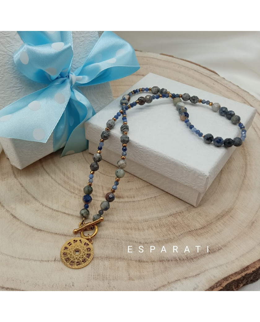 Naszyjnik zakończony jest elementami ze stali szlachetnej 316 L w kolorze złotym. Jest to materiał 100 % antyalergiczny. Nie zawiera niklu, lidu, ołowiu. Może być noszona przez osoby o wyjątkowo wrażliwej skórze.