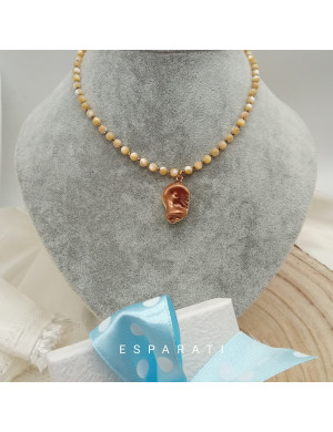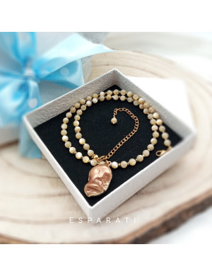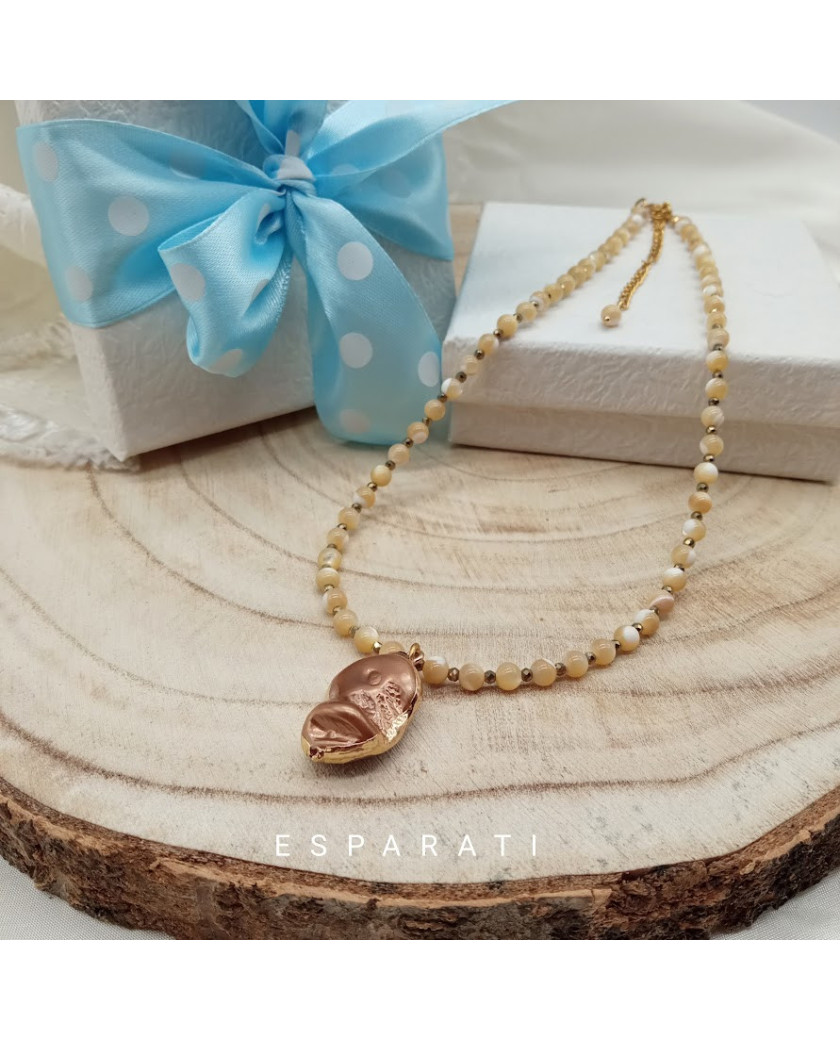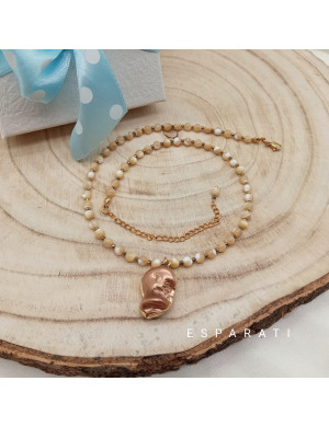 Naszyjnik zakończony jest elementami ze stali szlachetnej 316 L w kolorze złotym. Jest to materiał 100 % antyalergiczny. Nie zawiera niklu, lidu, ołowiu. Może być noszona przez osoby o wyjątkowo wrażliwej skórze.