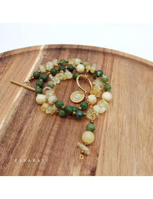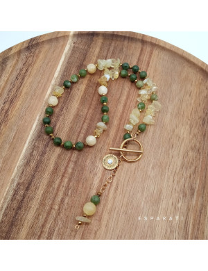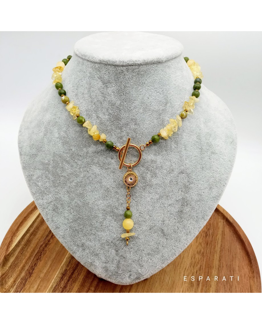 Naszyjnik zakończony jest elementami ze stali szlachetnej 316 L w kolorze złotym. Jest to materiał 100 % antyalergiczny. Nie zawiera niklu, lidu, ołowiu. Może być noszona przez osoby o wyjątkowo wrażliwej skórze.