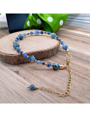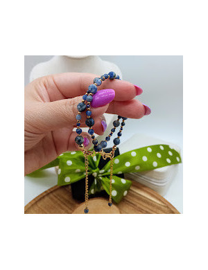 Ręcznie wykonana bransoletka z fasetowanych sodalitów w różnych odcieniach i rozmiarach – od granatu po szarości. Drobne, złote hematyty dodają jej subtelnego blasku i lekkości.
