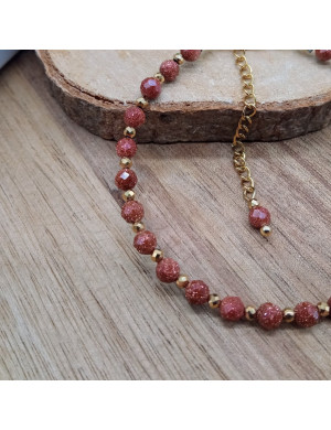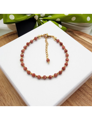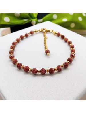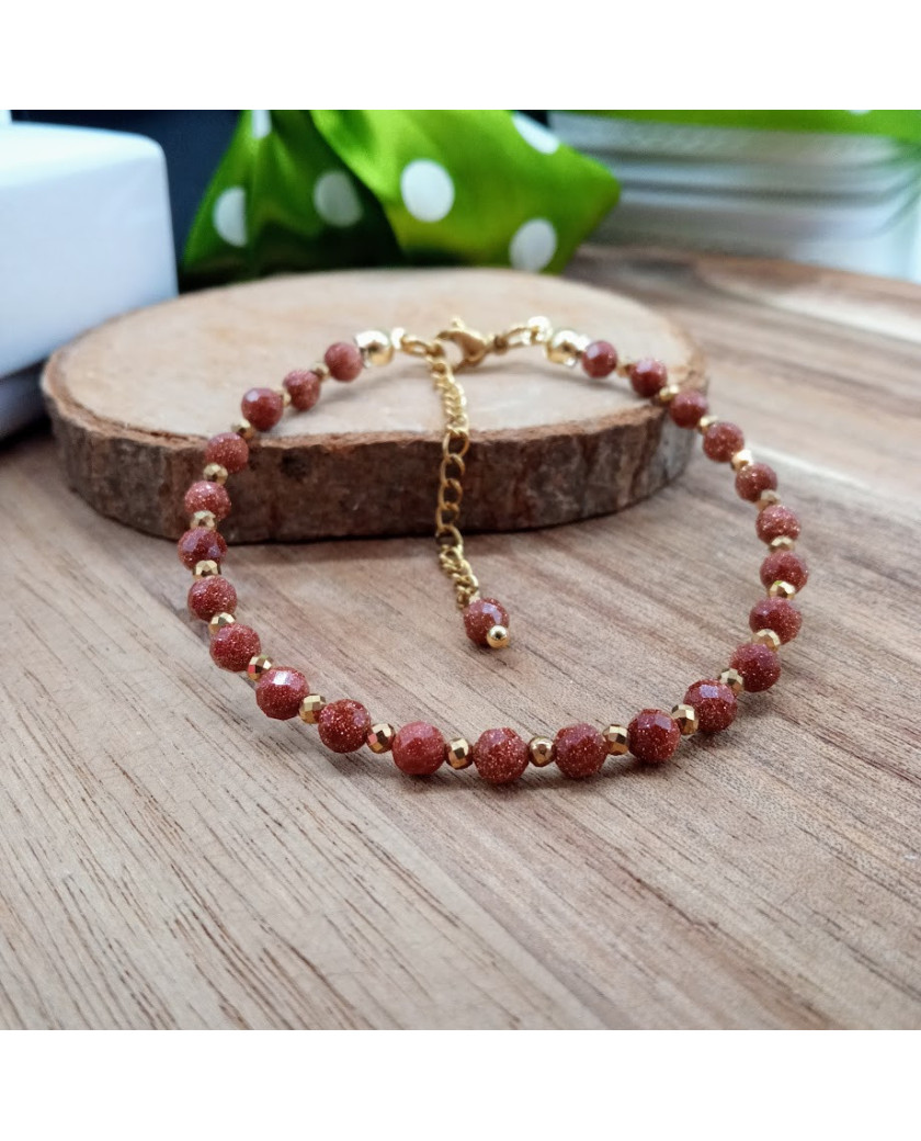 Zanurz się w ciepłym blasku zachodzącego słońca… Bransoletka została wykonana z fasetowanych kamieni piasku pustyni (4 mm), które migoczą niczym drobinki złotego pyłu na rozgrzanym piasku. Towarzyszą im drobne hematyty w kolorze złotym, dodające kompozycji elegancji i subtelnego połysku.