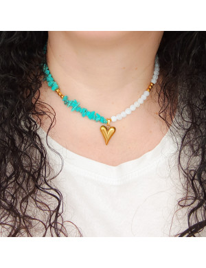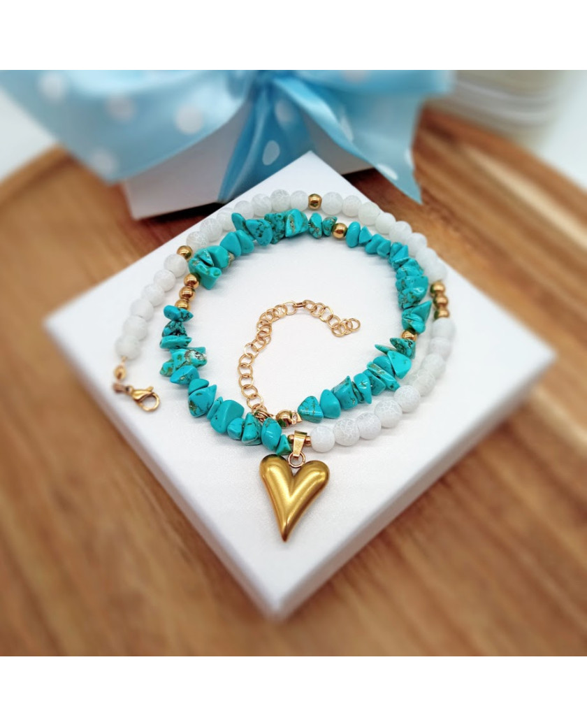💎 Howlit turkusowy i trawiony biały agat w zaskakującym duecie – ten naszyjnik to połączenie wakacyjnego luzu z elegancką świeżością.