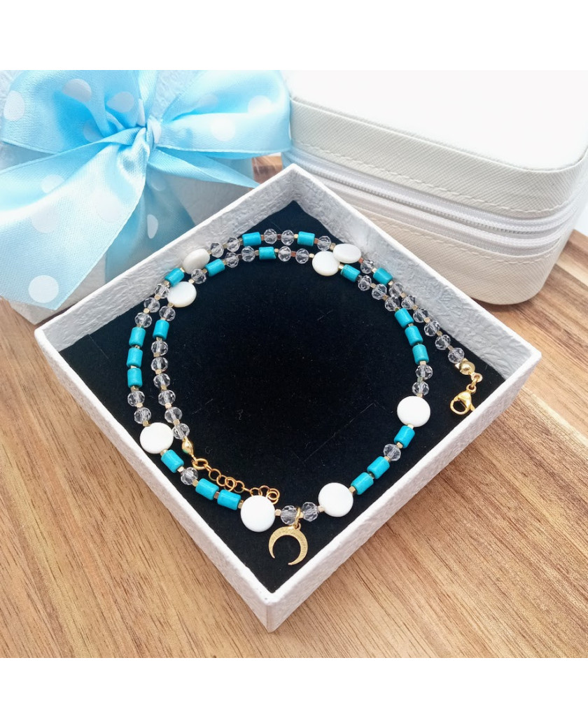 🌙💙 Symbol półksiężyca to talizman kobiecej energii i intuicji, a turkus od wieków uznawany jest za kamień ochronny i przynoszący szczęście.