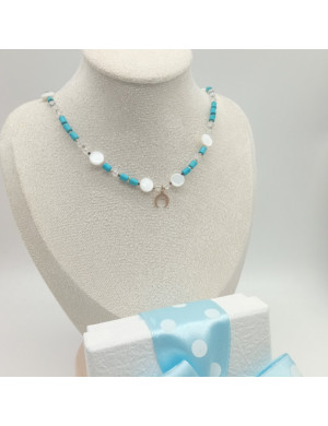 Naszyjnik zakończony jest elementami ze stali szlachetnej w kolorze złotym. Jest to materiał 100 % antyalergiczny. Nie zawiera niklu, lidu, ołowiu. Może być noszona przez osoby o wyjątkowo wrażliwej skórze