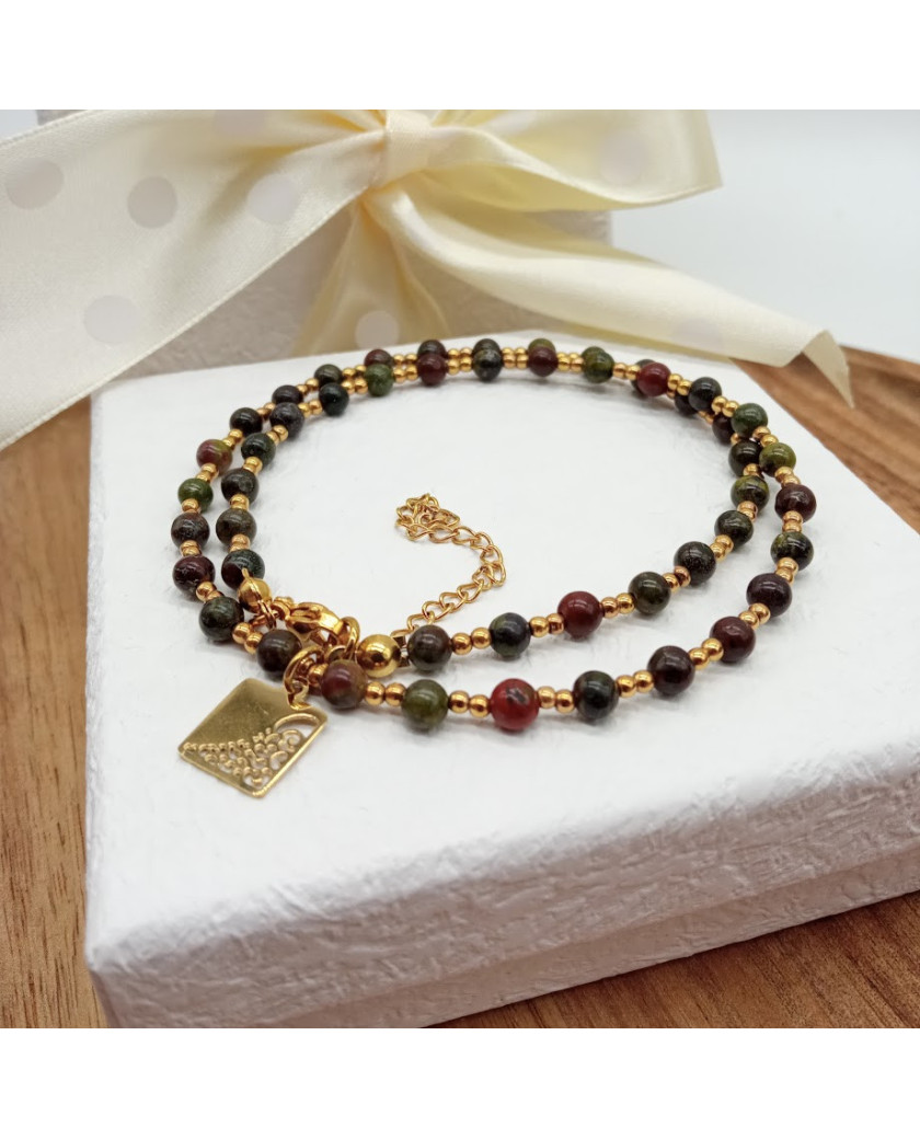 Agat indyjski symbolizuje równowagę i wewnętrzną harmonię, a hematyt dodaje subtelnego blasku i elegancji.