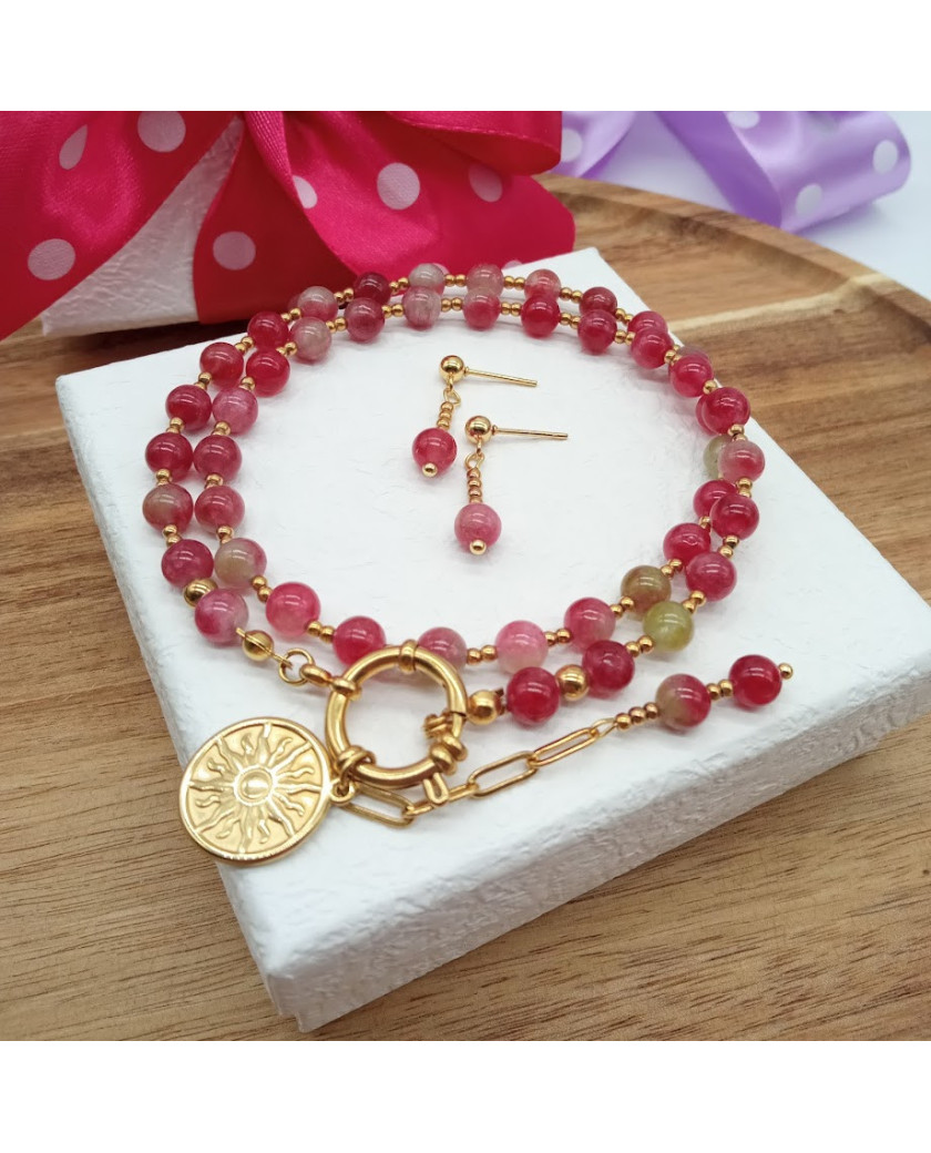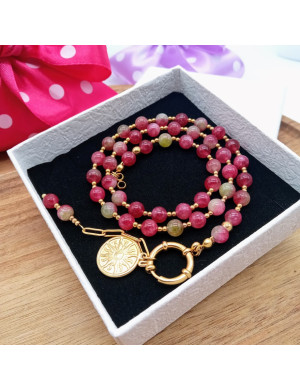 Biżuteria z jadeitu turmalinowego to nie tylko elegancki dodatek, ale też talizman niosący ze sobą dobrą energię. Każdy naszyjnik, bransoletka czy kolczyki wykonane z tego kamienia są unikatowe – natura nie tworzy dwóch identycznych odcieni.