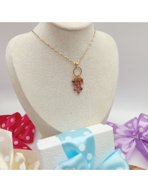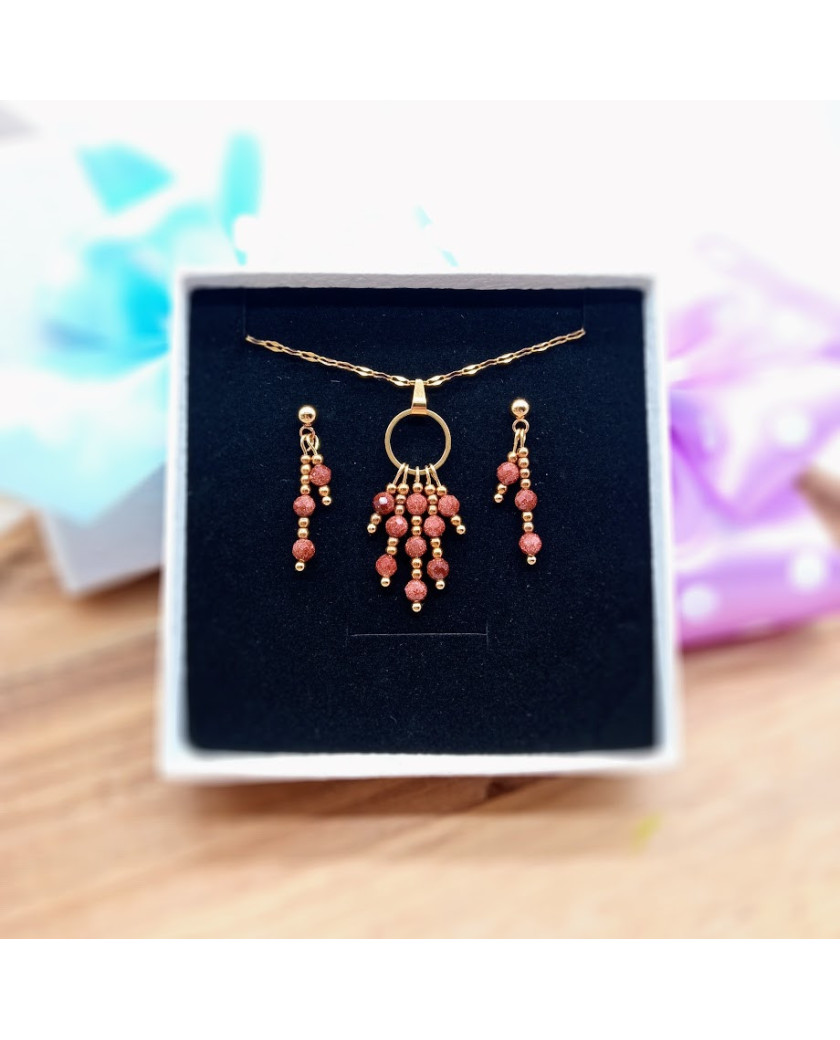 Elegancki komplet biżuterii składający się z subtelnych kolczyków oraz łańcuszka z efektowną zawieszką.